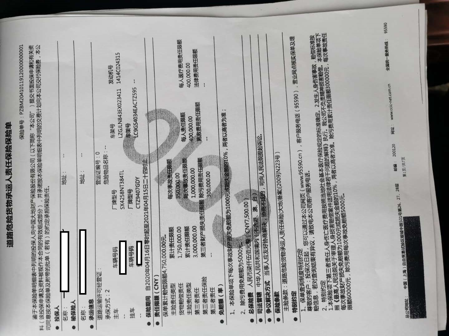 复印件:0收取纸质材料、上传电子文件 无 查看须知 查看受理标准 查看依据 6 车辆承运人责任险证明 申请人自备 申请人自备 必要 样表下载 原件:1