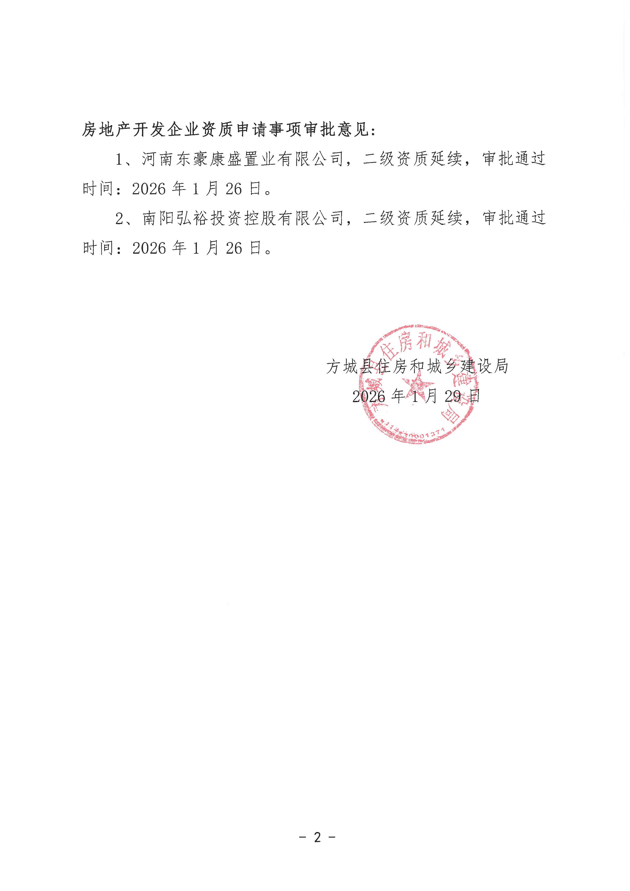 关于公布河南东豪康盛置业有限公司等2家房地产开发企业资质申请事项的通知